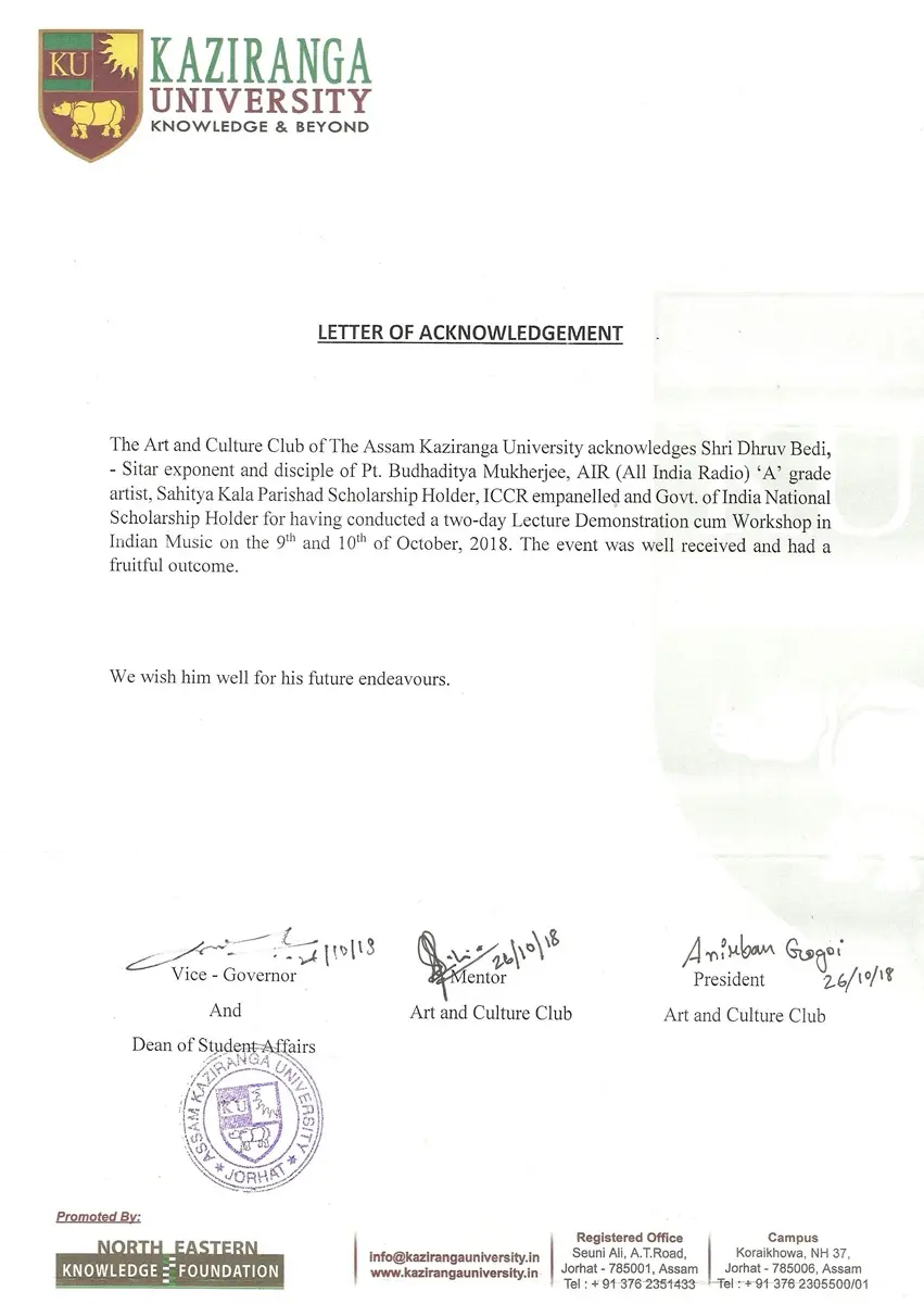An 'A' Grade Artist with All India Radio and empaneled with ICCR & SPIC MACAY, Dhruv offers experience backed by national and global recognition.