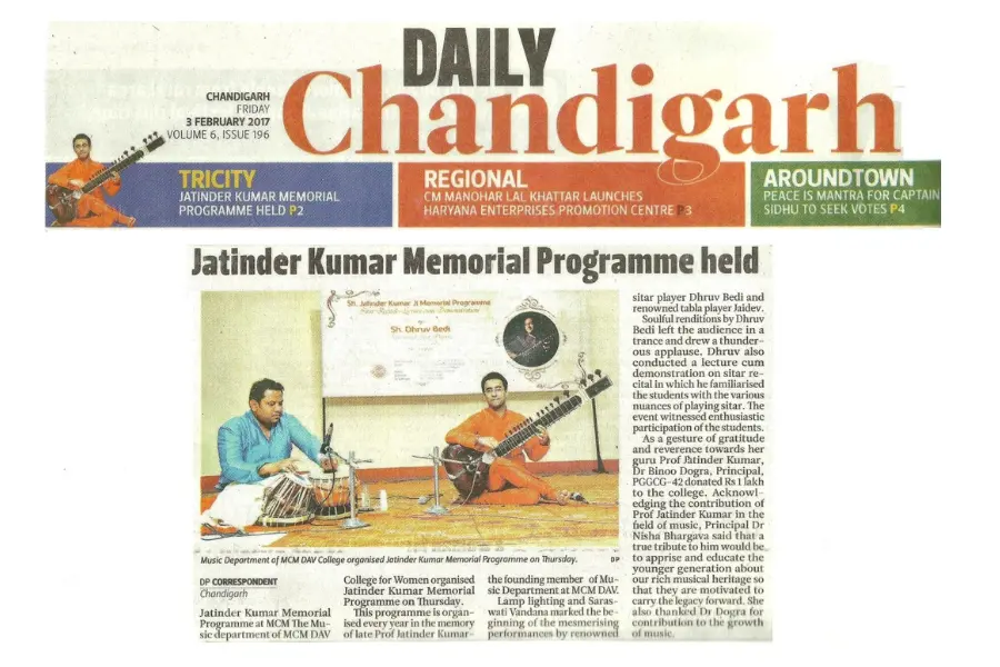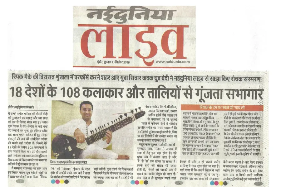 An 'A' Grade Artist with All India Radio and empaneled with ICCR & SPIC MACAY, Dhruv offers experience backed by national and global recognition.